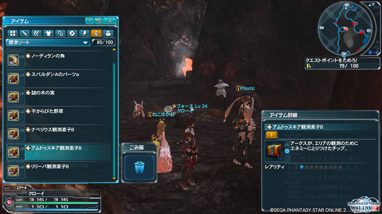 PSO2が遅れ気味なので、ちょっとがんばり中。素子集めがそろそろ完了しそうです。目標はアップデートまでに坑道突入!