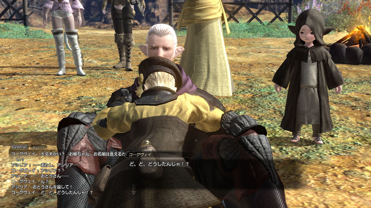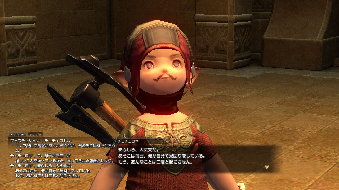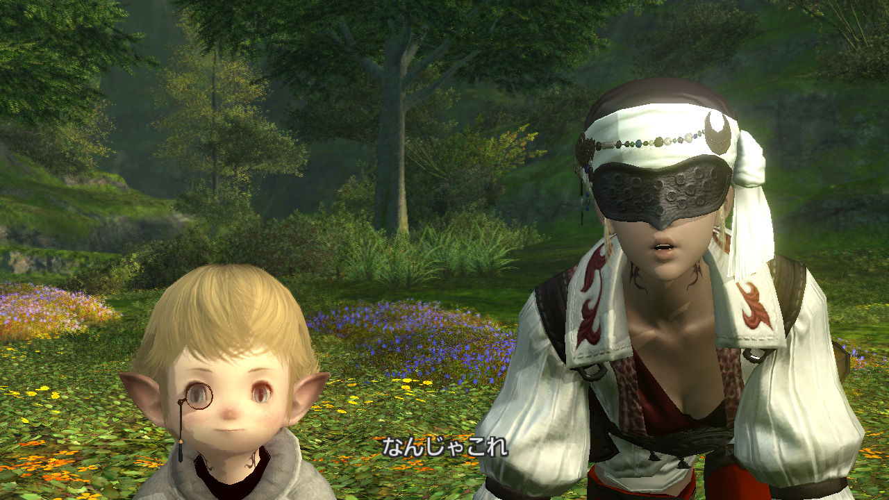 所変わってグリダニア編。こちらはなんだか、コメディタッチ? 首筋の入れ墨、リムサ編に出てくるミコッテにも入っていたのですよね、気になります・・・