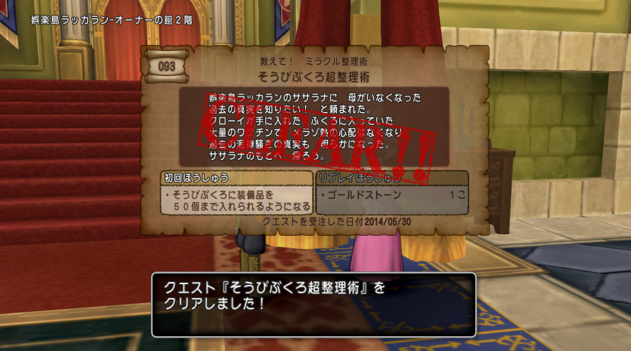 装備袋拡張クエをクリアしました。これで木工上げがはかどります!