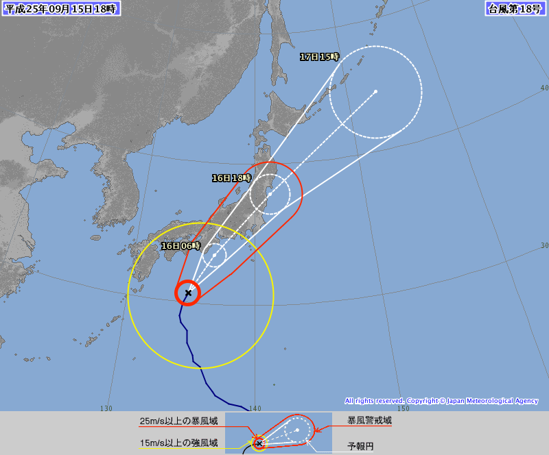 今回の台風、上陸しそうですね。明日の朝から夕方にかけて、日本を縦断しそうです。