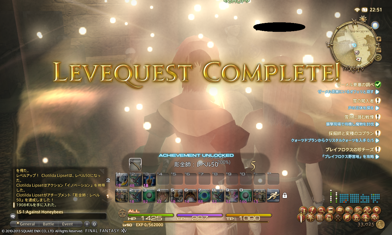 彫金士レベル50達成です、やったね! 装備整えたり、ここからが本番ですけどね・・・w