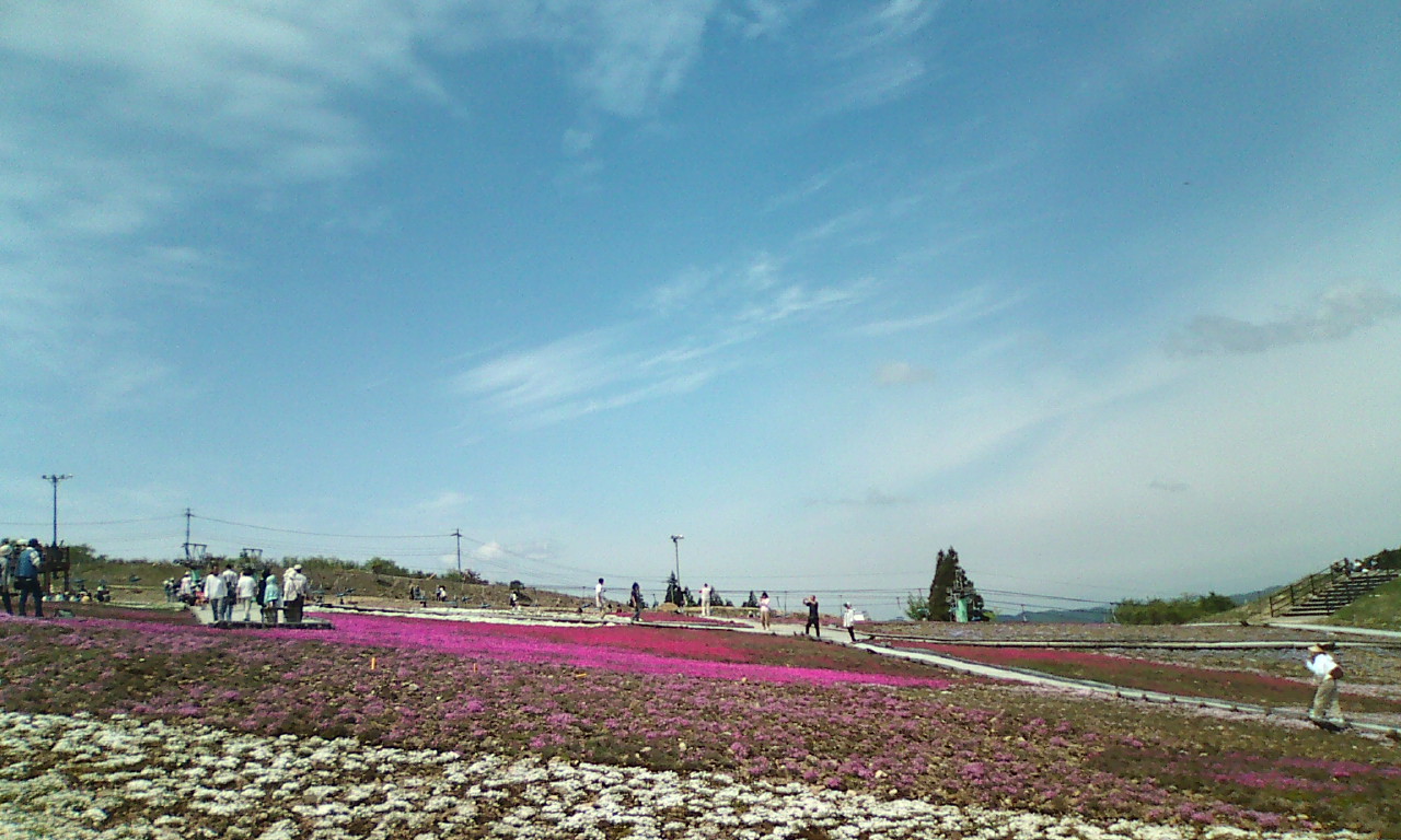 数年前から芝桜を植え始めて、今年で完成したそうです。テレビでも紹介されてたりして。混むって聞いてたから、朝5時に起きて準備、出発です。