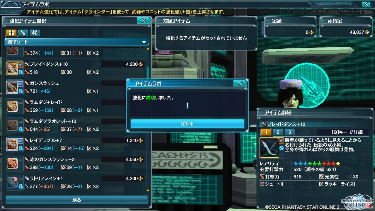 とりあえず、サクっと+10に。グラインダーがほぼ無制限に使えたり、強化リスク保護もガンガン使えたり、強化はホントにやりやすくなりましたね~。