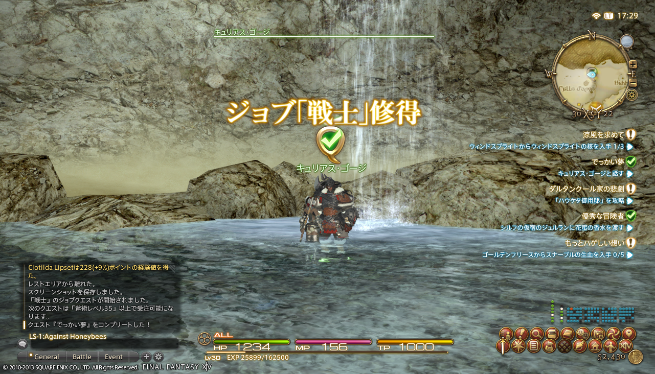 今日はお休みだったので、ちょっとひかれるんじゃないか、ってくらい長時間プレイ。初ジョブゲットしました!