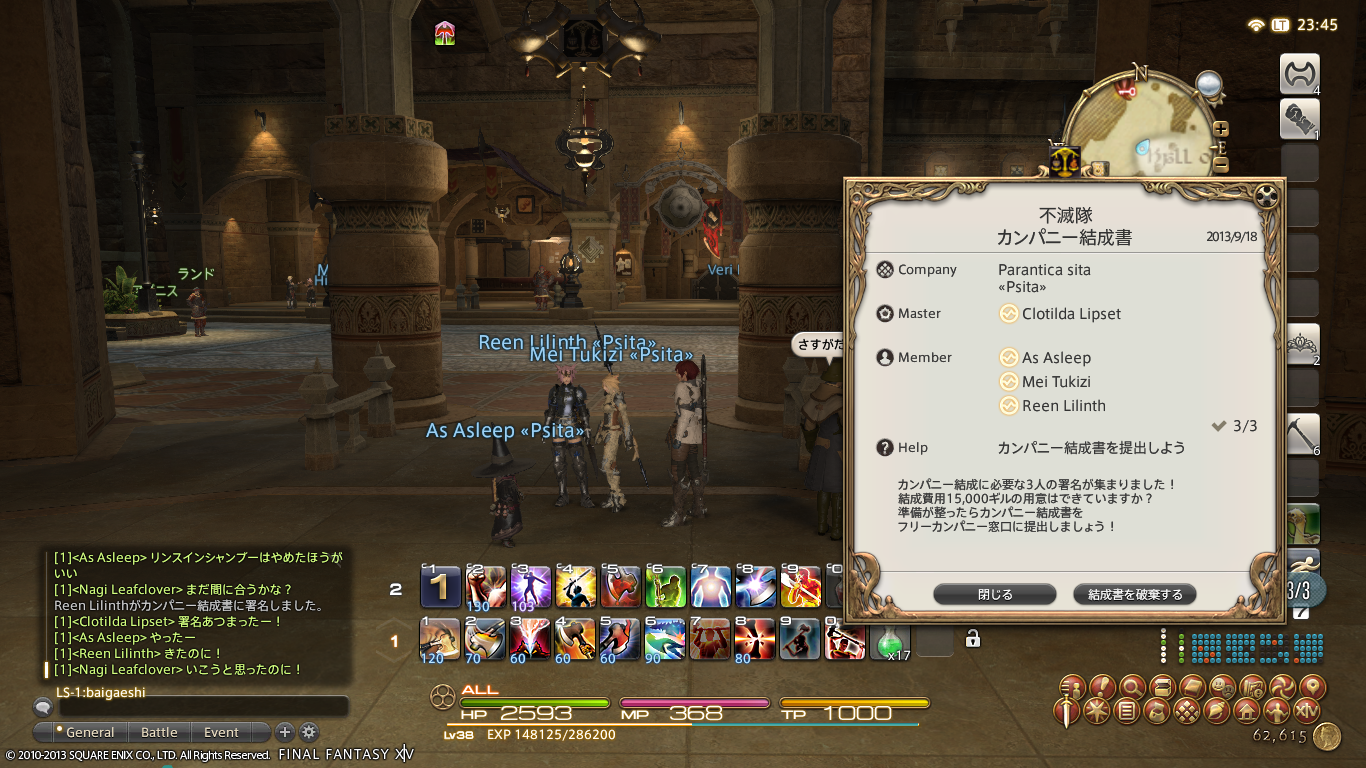 あ、無事フリーカンパニー結成できました。よかったよかった。