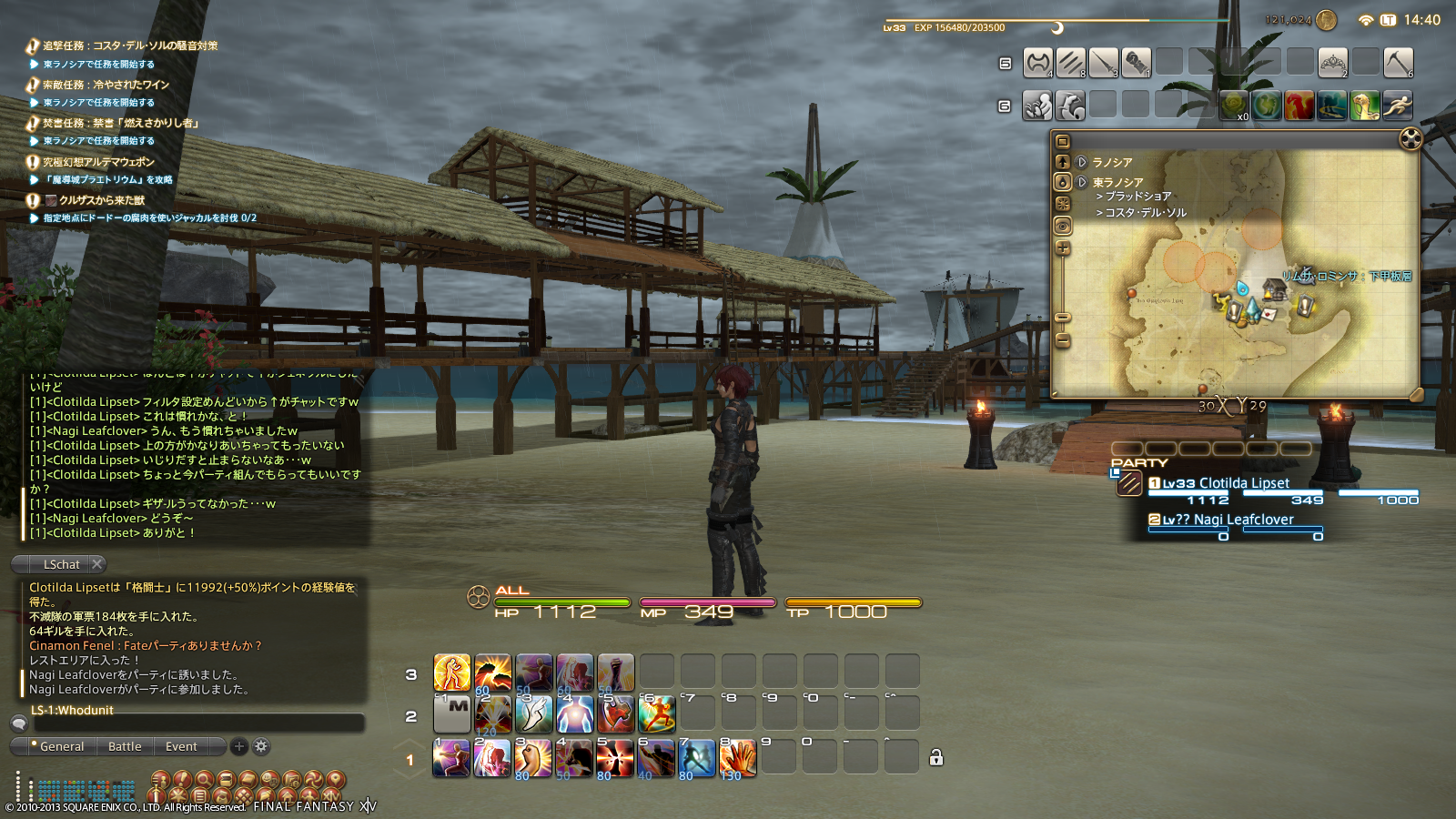 パーティリストや体力ゲージなど、デフォルトだと画面の4隅バラバラに配置されていた必要な情報を、なるべく視線を動かさなくてすむよう下側へまとめてみました。