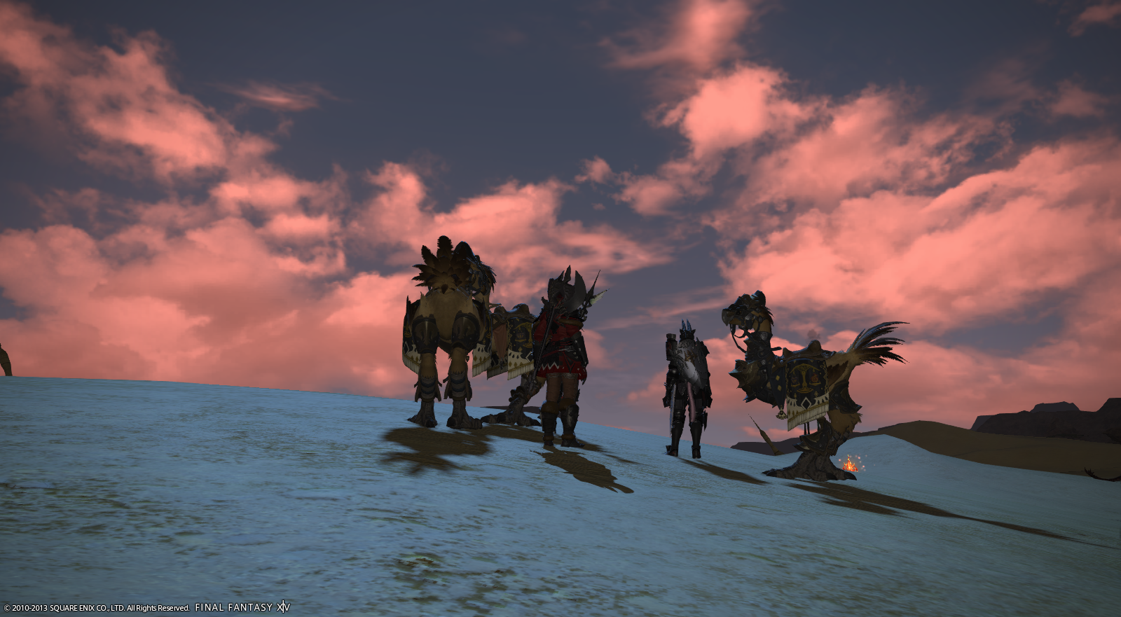 めいさんに誘ってもらって宝探し。ようやく探し当ててふと見渡したら、夜明けの空が綺麗だったです。